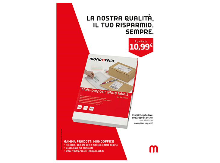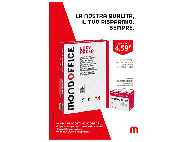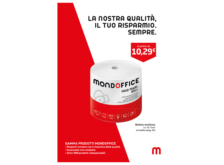 Oltre 1.000 articoli che ti offriranno la Migliore qualità al Prezzo più conveniente. Scoprili tutti tra le pagine del nostro catalogo oppure sul nostro sito Mondoffice.com: dalla carta alla cancelleria, dall’igiene e la pulizia ai prodotti informatici, il nostro nuovo marchio ti permetterà di trovare l’articolo adatto per ogni tua esigenza.