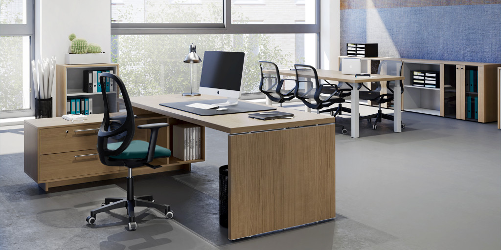 Stile e funzionalità. Qualità, design elegante e cura dei dettagli donano alla linea una modernità unica e di gran classe. Una linea completa che si compone di scrivanie, tavoli riunioni e contenimento. Eleganti distanziali permettono il passaggio dei cavi tra il piano scrivania ed i fianchi. Tutti i componenti sono realizzati in melaminico bilaminato antigraffio ed antiriflesso ecologico ed ecosostenibile. Piani con spessore 38mm, mobili hanno struttura (sp. 18 mm), schiena (sp. 10 mm), ripiani (sp. 25 mm). Rifiniti posteriormente sono utilizzabili come pareti divisorie.
