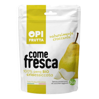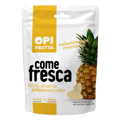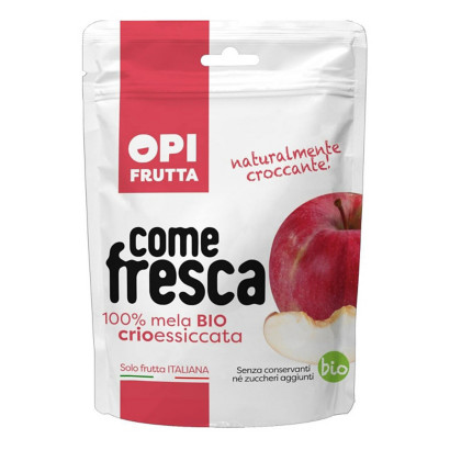 Gli snack OPI frutta sono fatti con frutta crio-essiccata. Sono leggeri. croccanti e gustosi, sono prodotti naturali, adatti a una dieta vegana e anche privi di glutine.